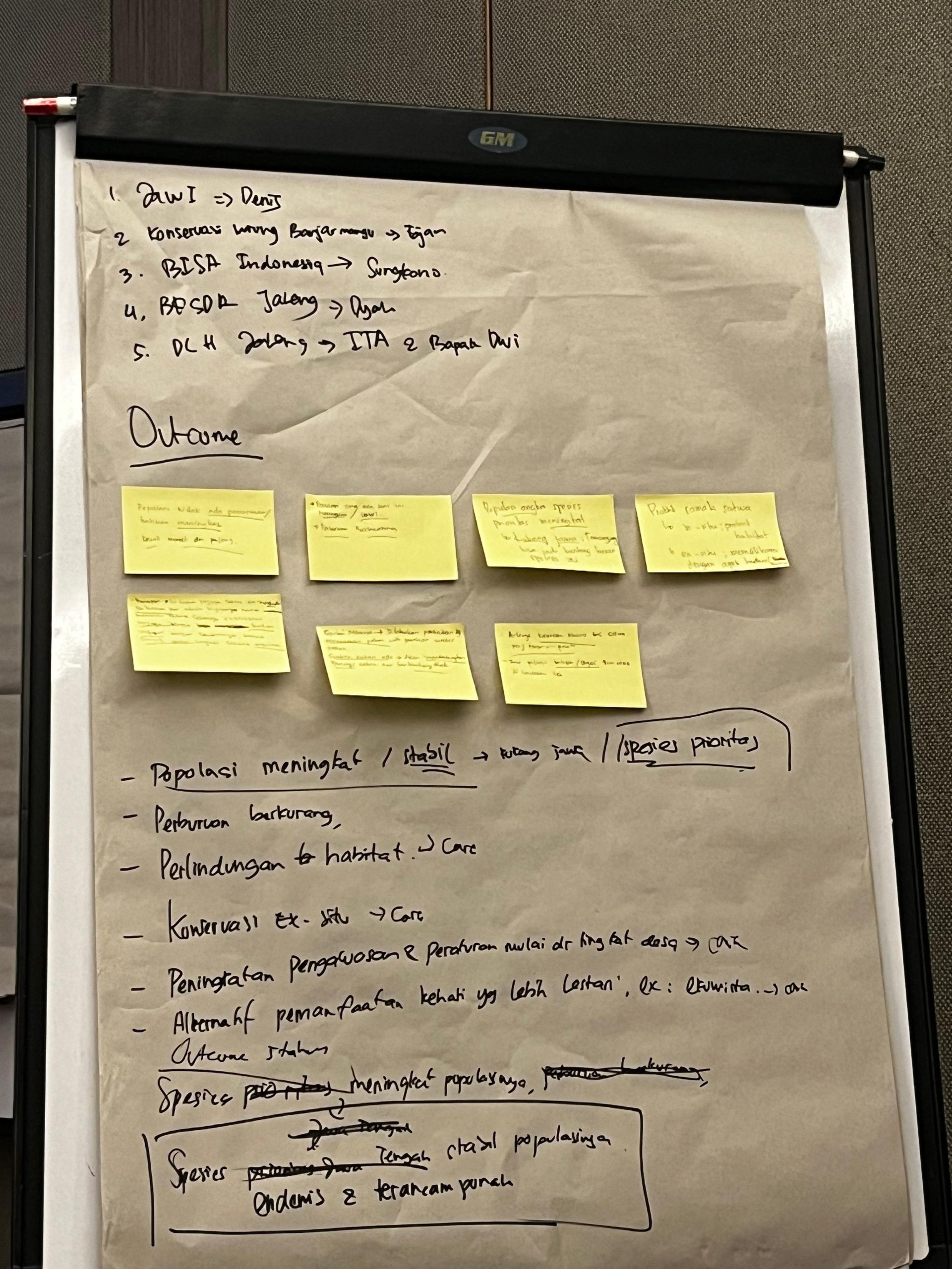 The Phase II FGD served as a consolidation space for various stakeholders, including the Central Java provincial government, academics, Civil Society Organizations (CSOs), local communities, and the private sector. Discussions focused on identifying desired changes, developing strategic pathways, alternative scenarios, and formulating a collective long-term vision. These points referenced core biodiversity management issues, including State, Pressure, and Drivers identified in the Phase I regional sessions.